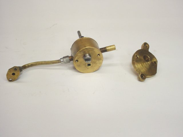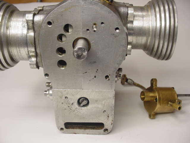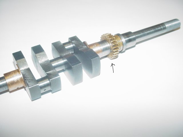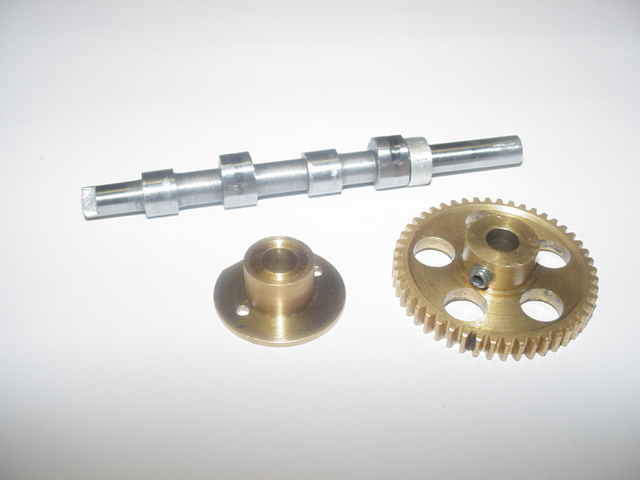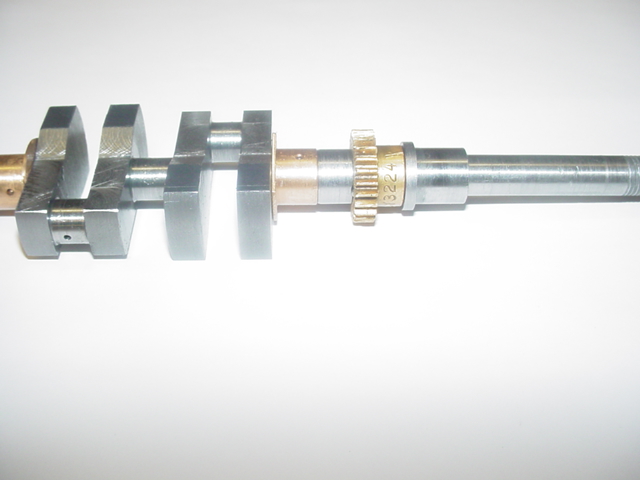 Left half of crankcase, oil pump, cam and oil pan assembled.