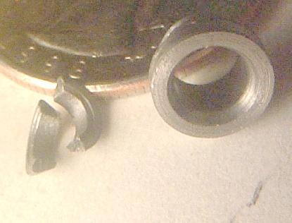 This (above) is a view of the keepers. They are laying next to a quarter for size comparison. The angles used on the keepers and spring seat are 60 deg.(a standard center drill).