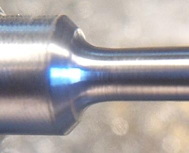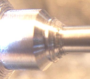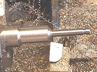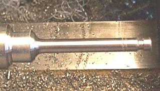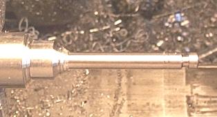 First, chuck a piece of stainless steel that is bigger than the valve that you want to make. Turn this down to the size of the valve stem and cut the notch for the keepers. (below left)