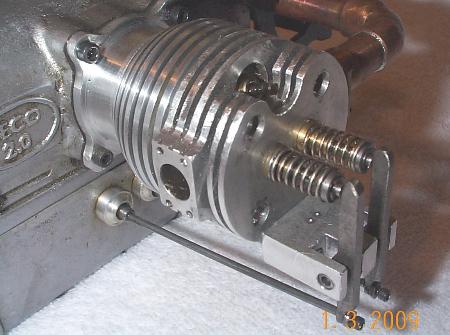 2-Feb-2009 I can see that I may be able to fly the engine soon, and have been considering its weight. I have now removed approx. 10 oz from it. I removed the rocker boxes. They are heavy and not really necessary. I can add a drop of oil to the rockers before each flight. I also turned down the cylinders and cylinder heads. The diameter was reduced by .300". I also reduced the wall thickness of the outer cylinder housing. All this has given a new look to the engine. There is more that I can do to reduce weight, but I have already set up the plane for a heavy engine and don't want to find myself adding weight to the front because my engine is now too light. Click the picture for a close-up of the engine. |